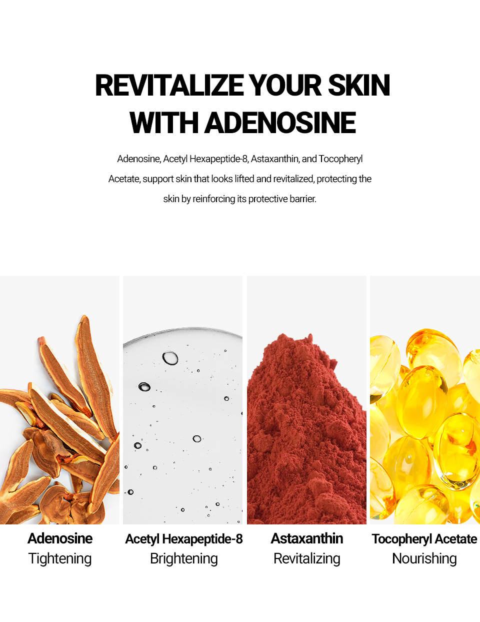 Ingredients: Water, Glycereth-26, PEG/PPG-17/6 copolymer, Glycerin, Sodium Hyaluronate, 1,2-Hexanediol, Hydroxyethyl Urea, Portulaca Oleracea Extract, Aloe Barbadensis Leaf Juice, Beta-Glucan, Rosa Centifolia Flower Water, Centella Asiatica Extract, Hydrolyzed Collagen, Acetyl Hexapeptide-8, Xanthan Gum, Butylene Glycol, Boswellia Serrata Resin Extract, Salix Alba (Willow) Bark Extract, Betaine, Carbomer, Allantoin, Polysorbate 80, Arginine, Adenosine, Disodium EDTA, Tocopheryl Acetate, Ethylhexylglycerin, Fragrance, Astaxanthin