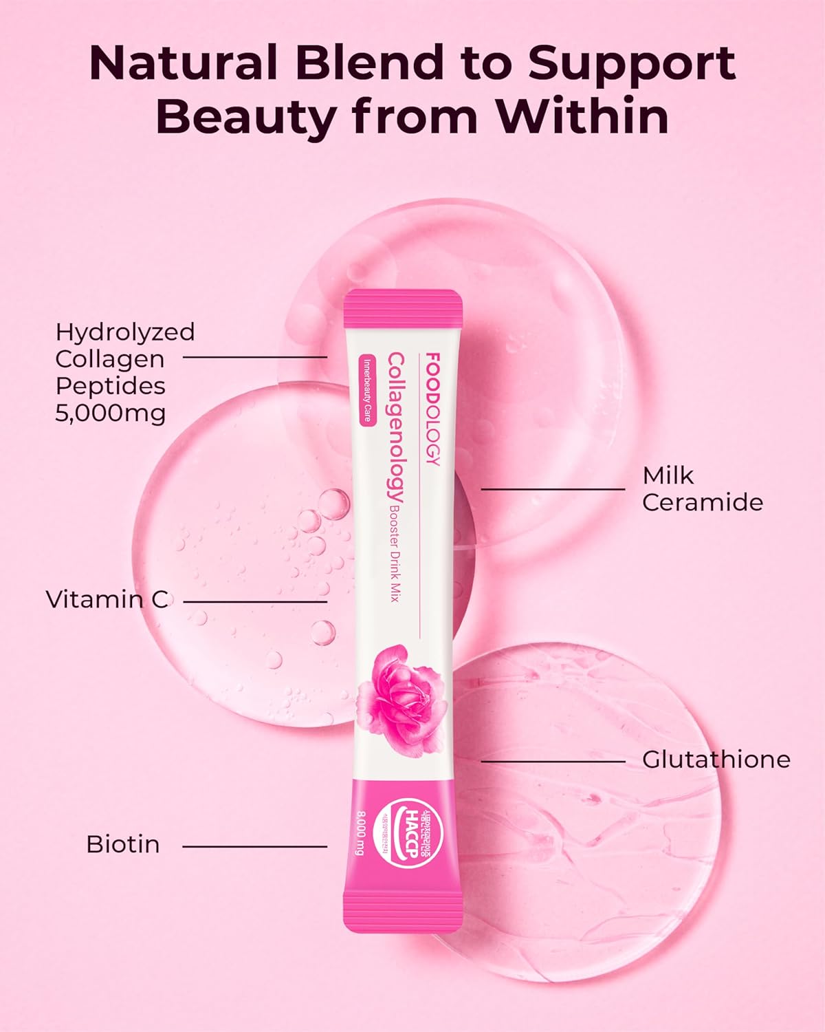 A collagen powder drink that may brighten the skin, improve the skin elasticity and provide face line caring.
