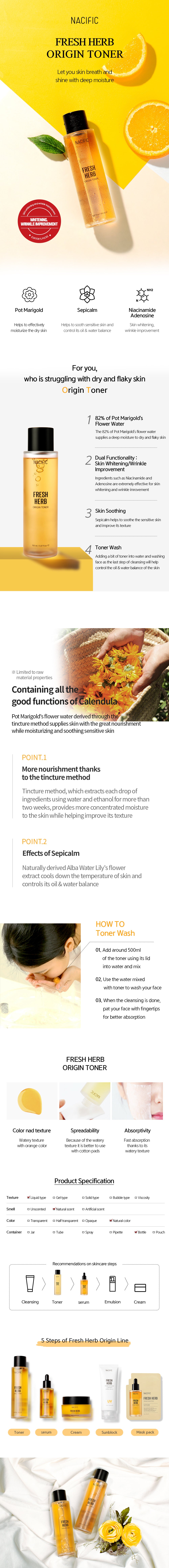 Invigorate your skin with the gentle Nacific Fresh Herb Origin Toner- reduce your wrinkles, brighten your skin, and cleanse your skin of harmful impurities to achieve that long-lost youthful look.