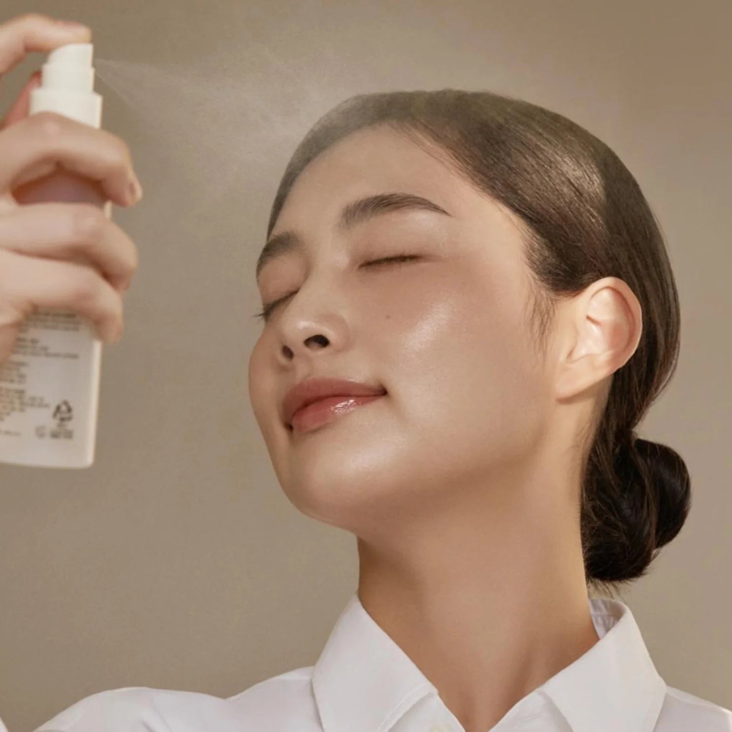 Spray evenly across the face with eyes closed.